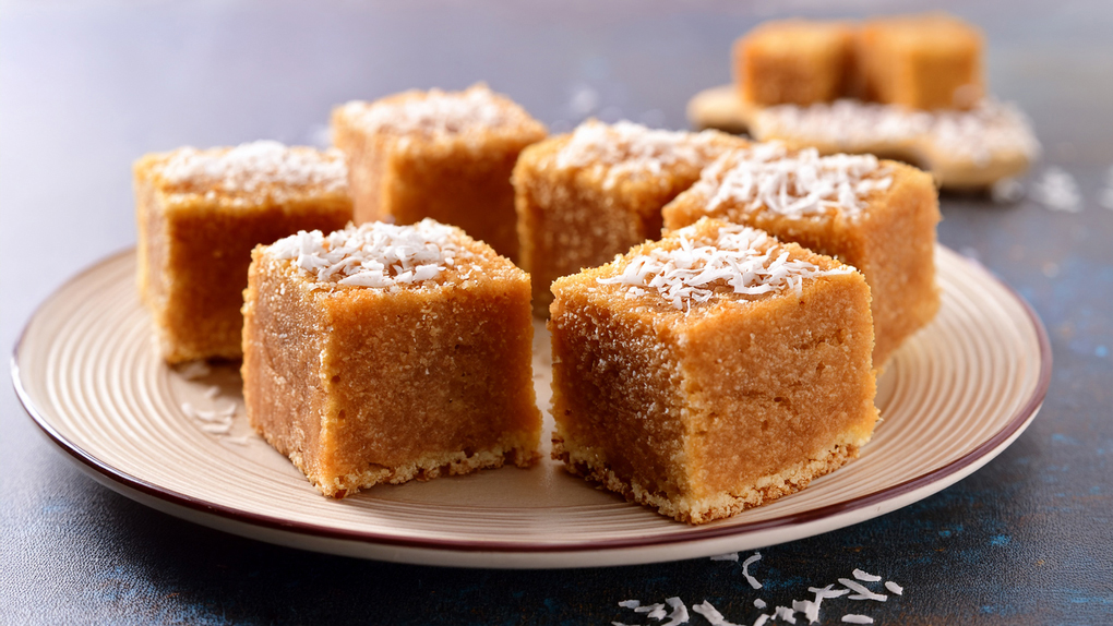 • Mix cardamom, pour into a greased tray, set, and cut.